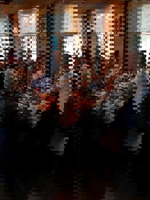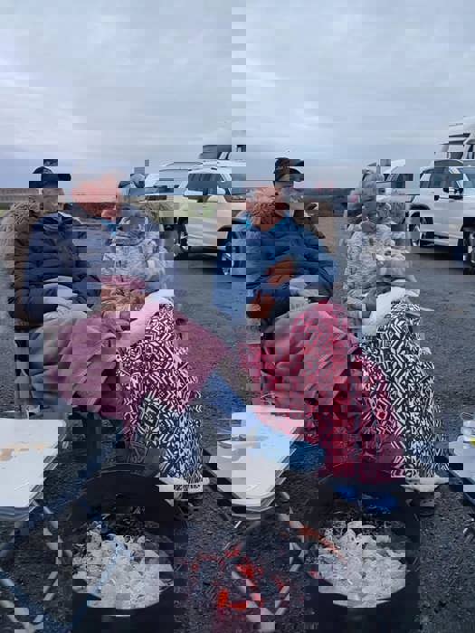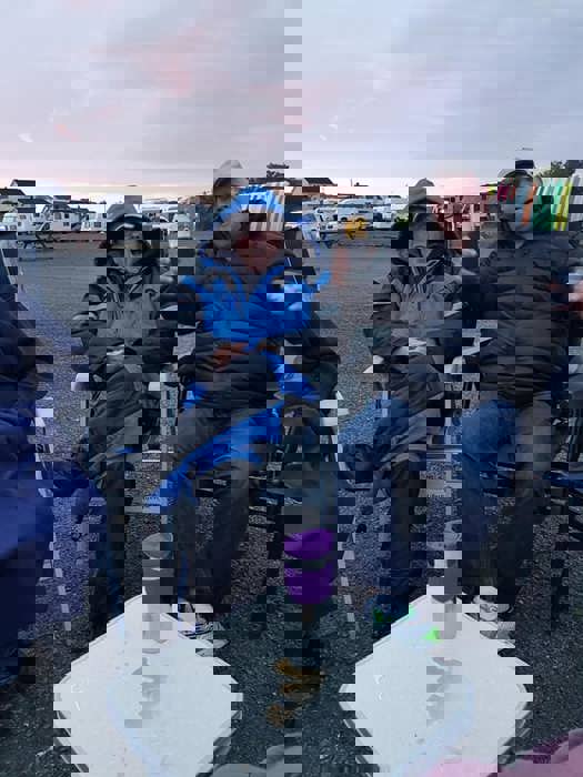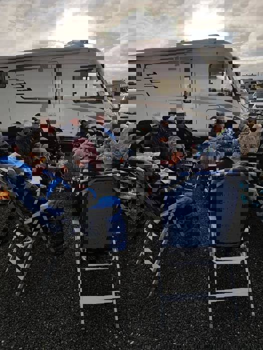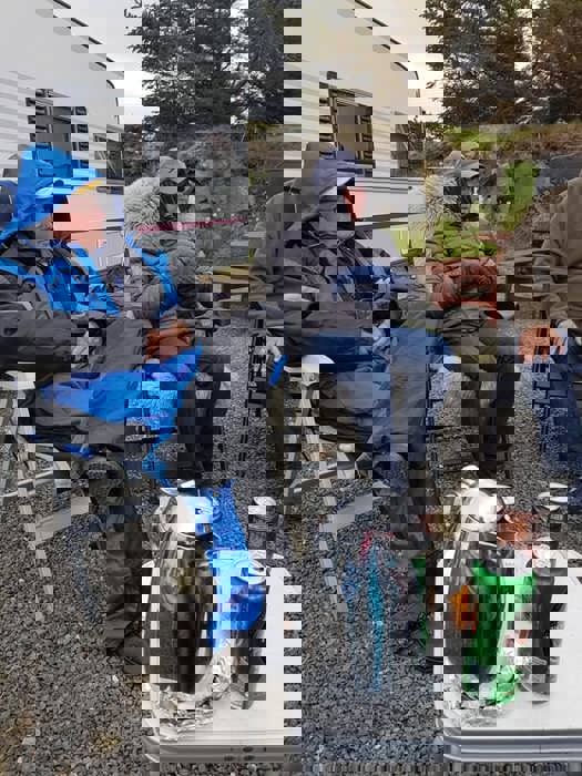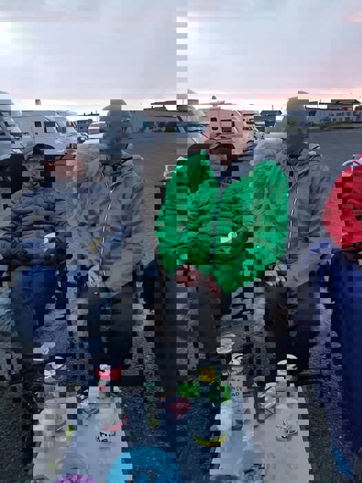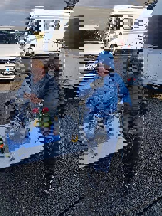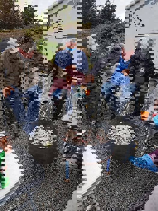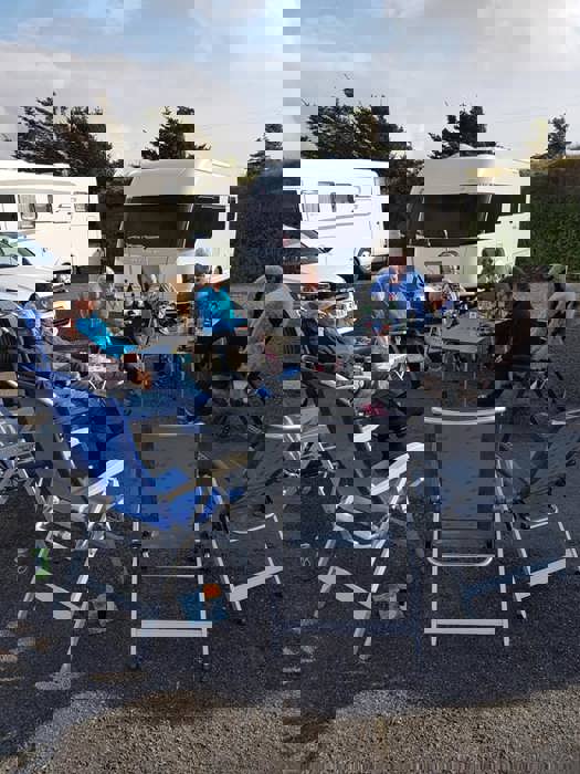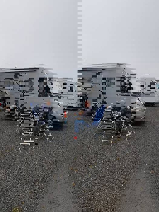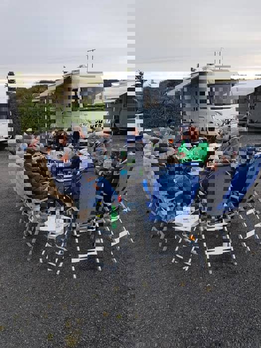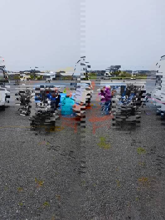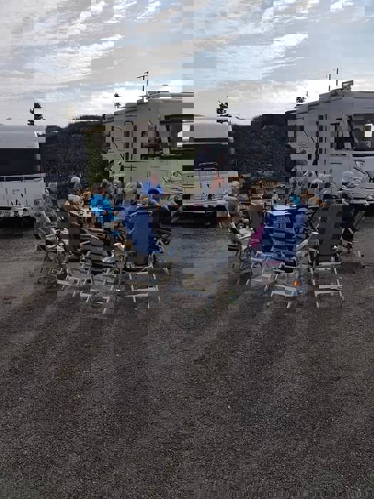 Fredag var det en vindstille kveld rundt båltønna for 8 enheter på Veiholmen Bobilparkering. På Pinseaften gikk noen stikkut tur og andre nøt stillheten på Veiholmen, før middag på Havkroa. 1. pinsedag var igjen vindstille, og det ble vaffelsteking og grilling med langbord.