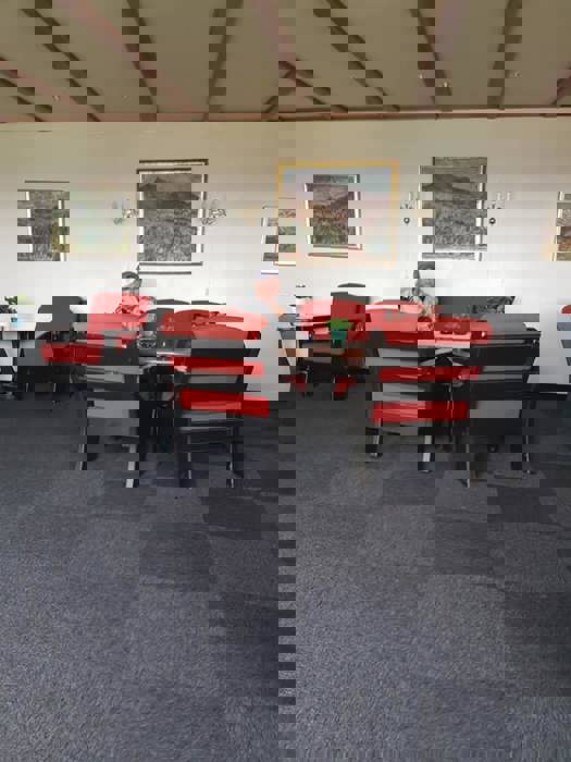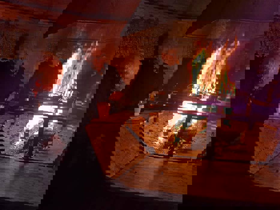 Vel nede fra turene ble det bakels og kaffe inne da det var en del vind i den tiden, så litt kalt å sitte ute.