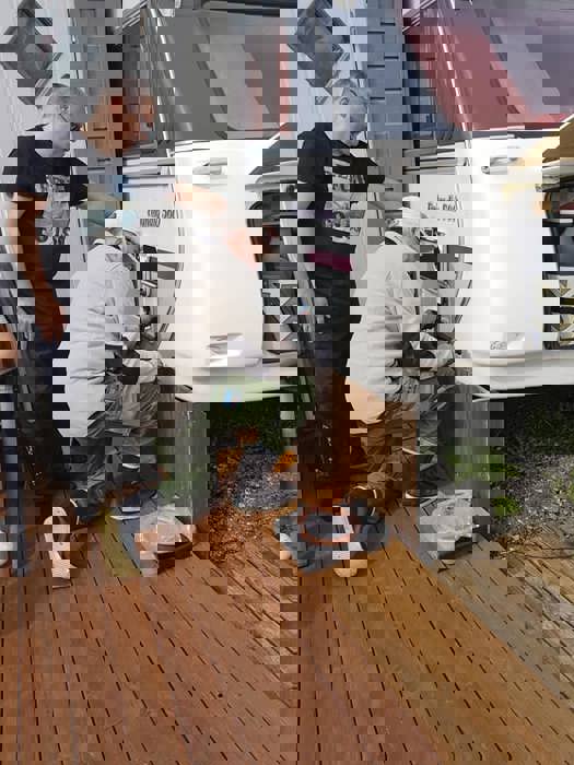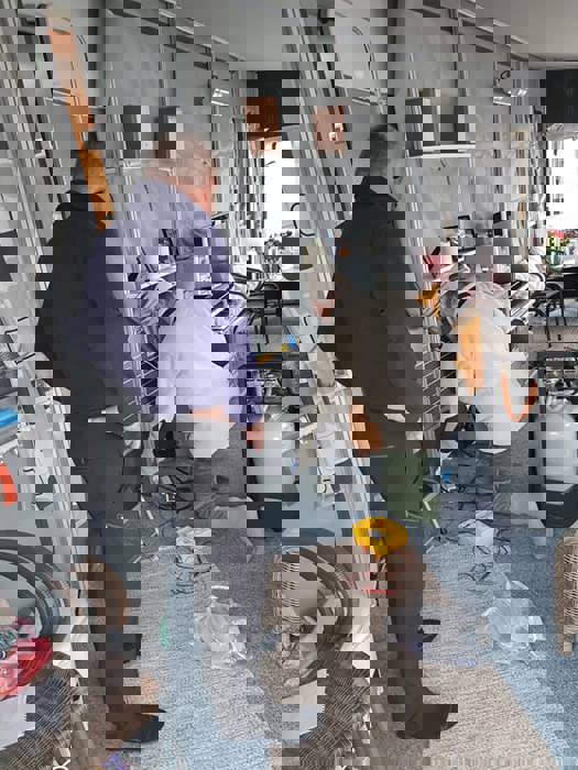 Det går igjen også på Tingvoll, med dårlige gasslanger. Dagen ble tilbrakt i regnvær, men vi har kontrollert 20 enheter til sammen.