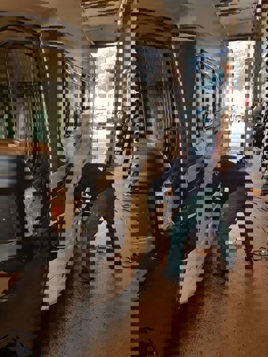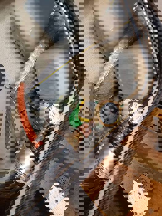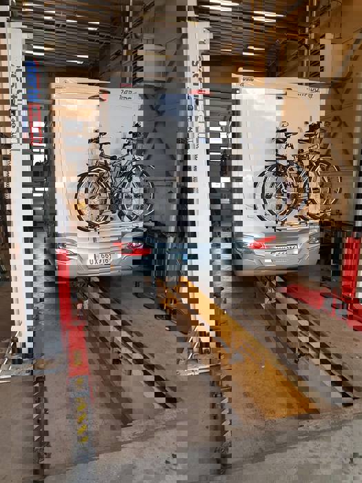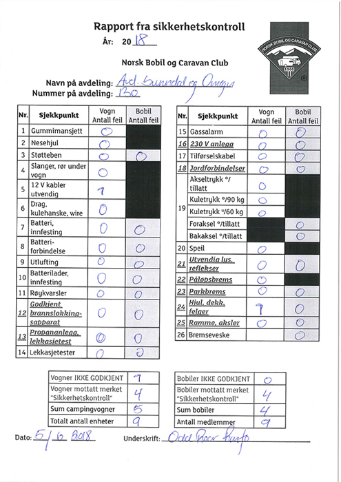 Det ble sjekket at gassanlegget var tett og at ikke slangene var for gamle. Bremser og understell ble kontrollert. Vi sjekket også om var er jordfeil på det elektriske anlegget.