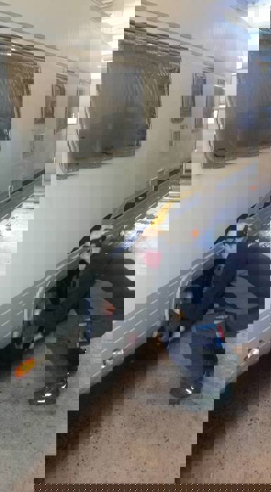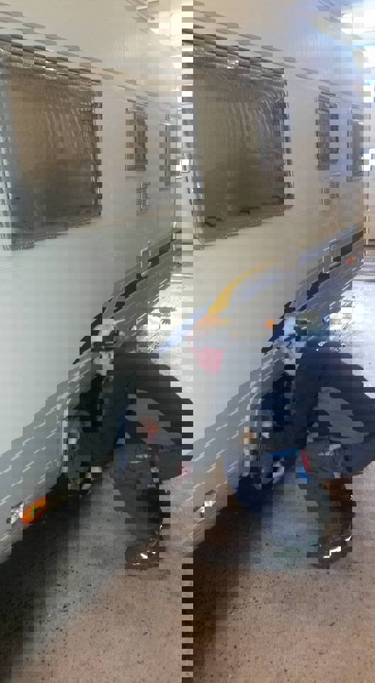 Vi hadde fått til et samarbeid med Nettbuss for lån av bremsetester, vår egen elektriker Knut kontrollerte 230 V og Jan Inge tok seg av kontrollen i smøregraven.