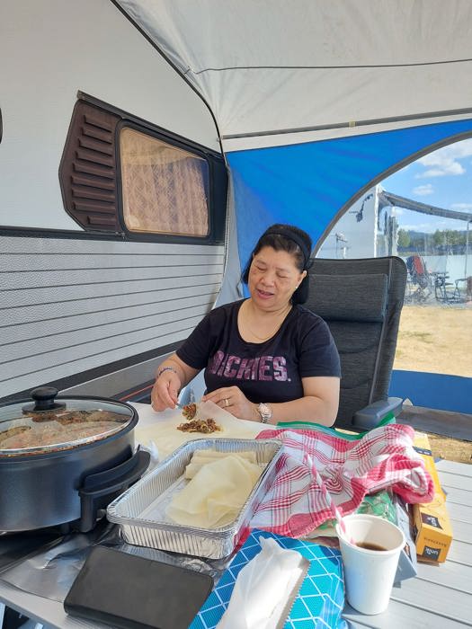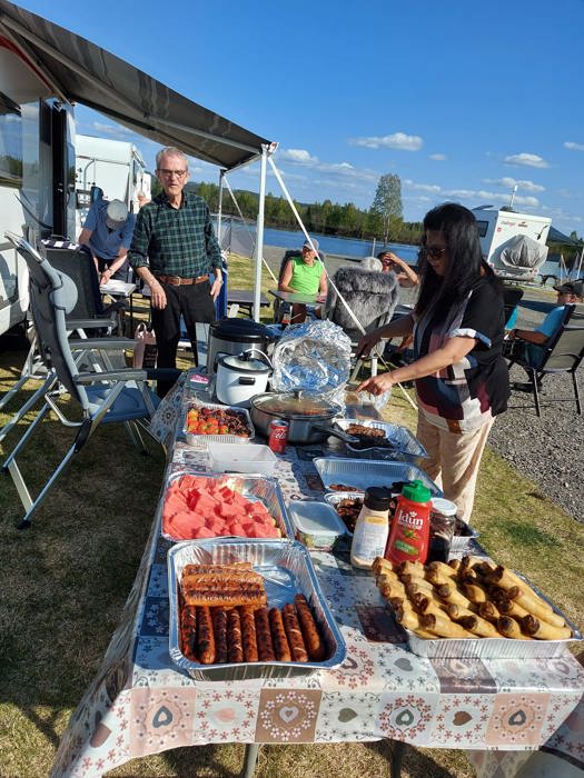 I Kristi Himmelfartshelgen arrangerte vi vårtreff på Flisa Camping. Vi hadde felles langbord, og med kokken Maria og Melodi ble det Fillipinsk aften med vårruller. Det var loddsalg og sol fra klar himmel!